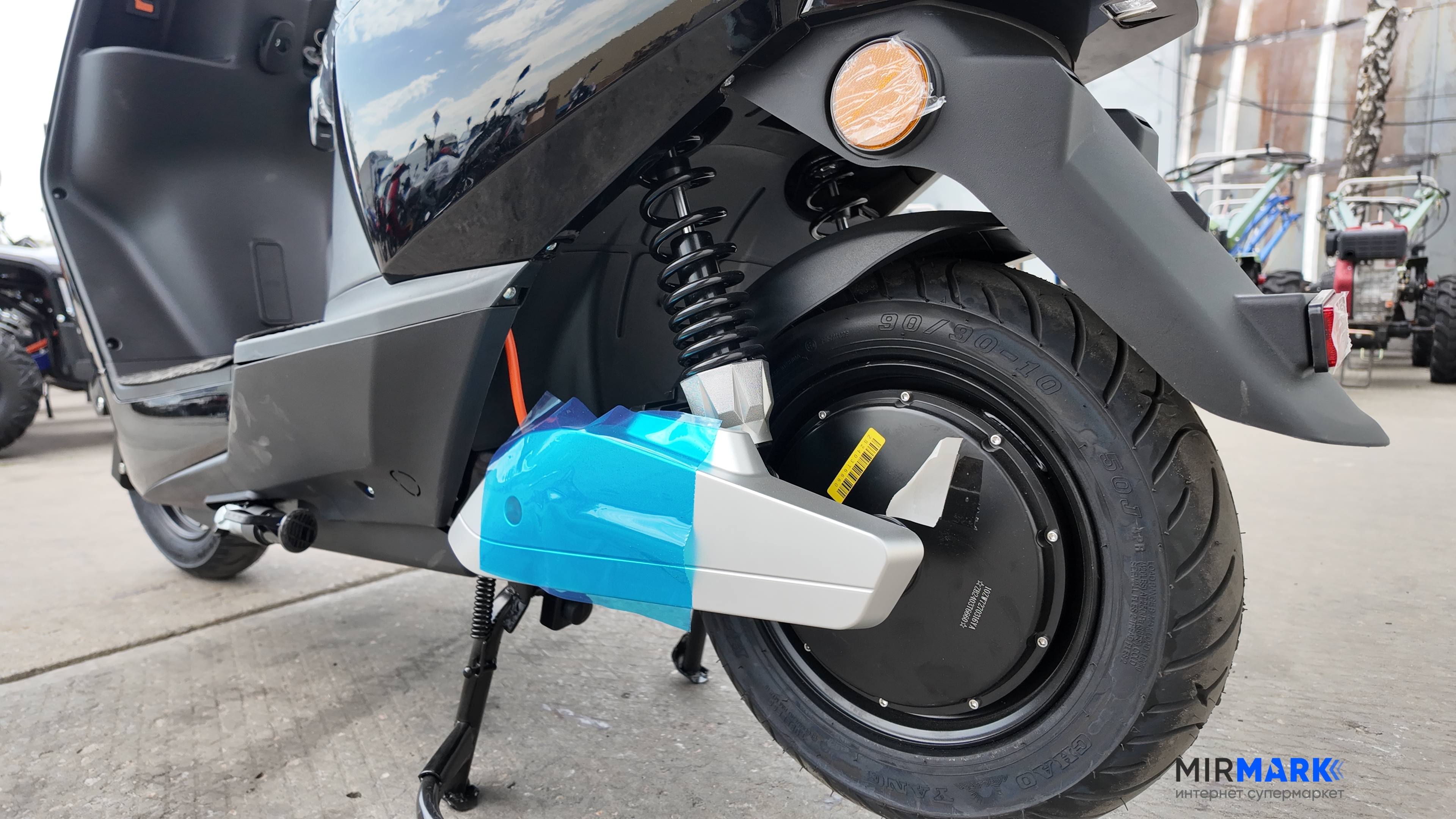 Світлодіодна передня фара і габаритні вогні дозволяють вільно рухатися по вулицях навіть в темний час доби. Високоточний світлодіодний дисплей з підсвічуванням відображає всю необхідну інформацію: швидкість, заряд батареї і інші необхідні дані. Спереду використовується подвійна амортизаційна вилка і дискові гальма, ззаду - хитний маятник і барабанні гальма. 16 дюймові шини дозволяють ефективно гальмувати і зменшити час зупинки транспорту. Невеликі габарити і вага дозволяють скутеру бути маневреним на дорозі і не займати багато місця на парковці.