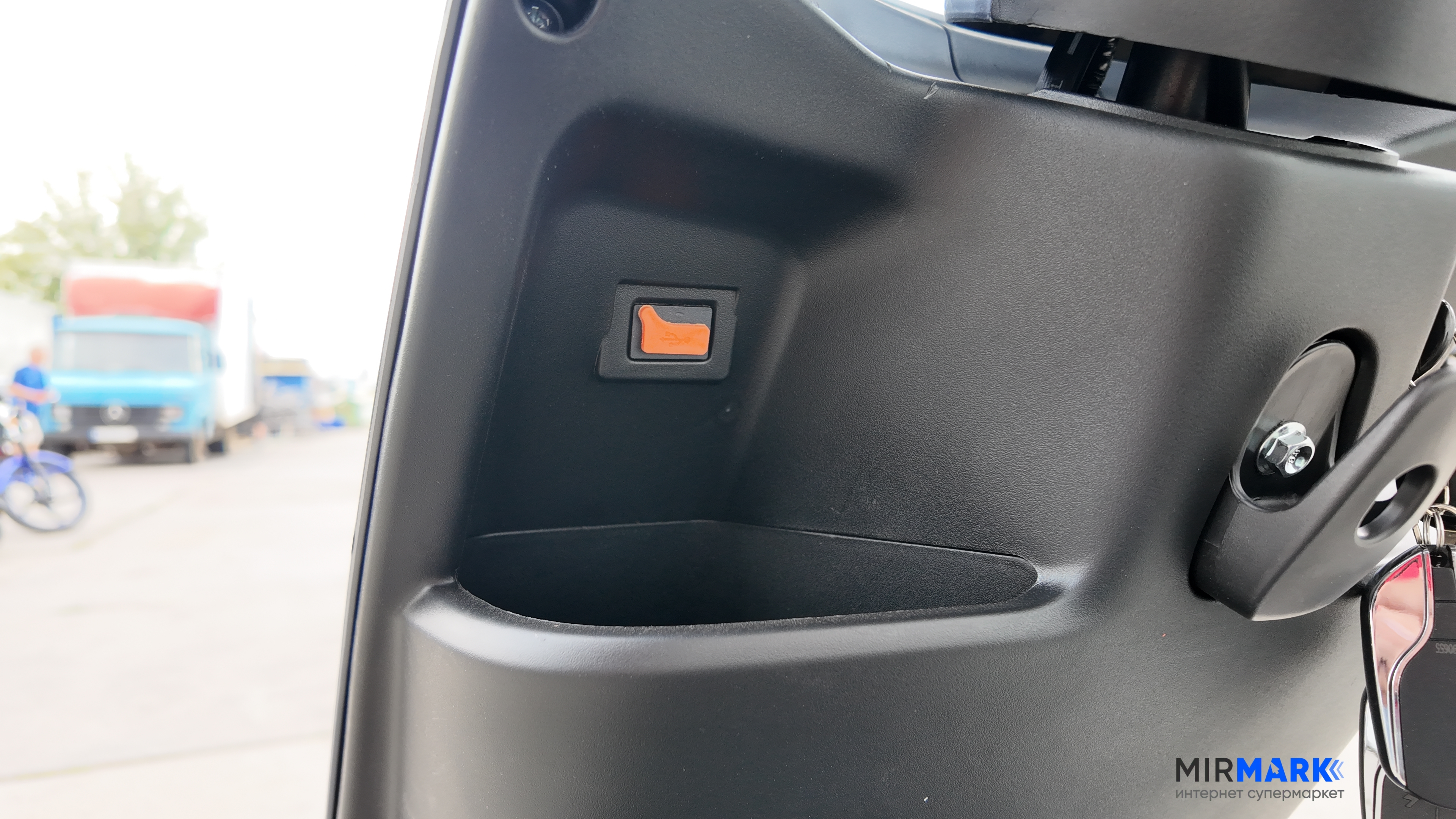 - USB, дзеркало заднього виду, ніжка для парковки, протиугінна система