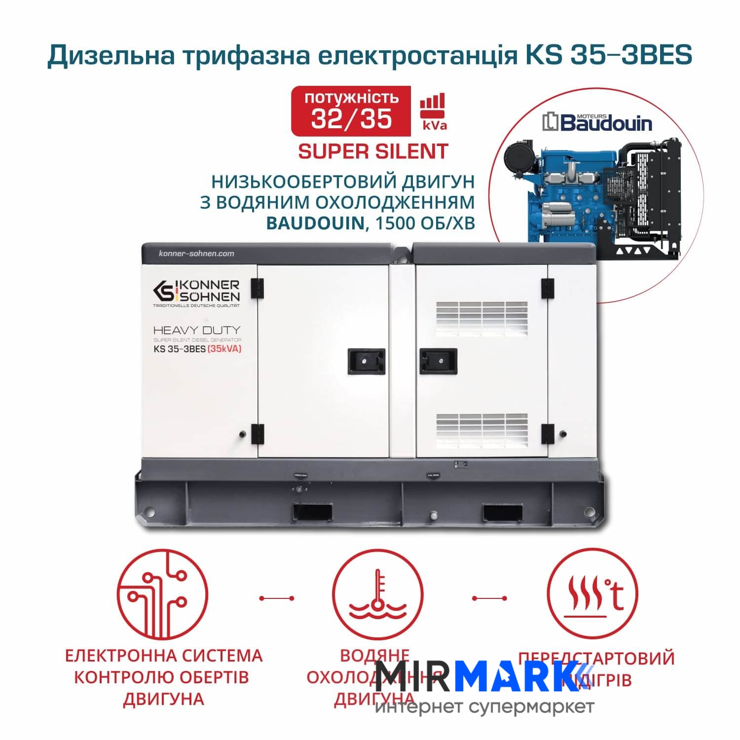 Електростанція дизельна Könner&Söhnen KS 35-3BES, трифазний (380 В), 28 кВт