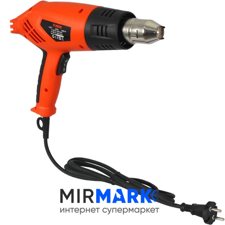 Високу продуктивність і ефективність пристрою забезпечує надійний і сучасний мотор потужністю 2 кВт з мідною обмоткою ротора, покритою захисним лаком для запобігання короткого замикання у разі потрапляння всередину вологи, дрібного сміття або пилу. Для грубої і делікатної обробки передбачено два функціональних режиму: 1-й – з потужністю повітряного потоку 0-250 л/год і температурою 50-350°C та 2-й – 0-550 л/год і температурою 100-550°C, перемикання між ними здійснюється трьохпозиційним ключем. Високий комфорт в експлуатації забезпечується замкнутою ручкою з гумовою накладкою, невеликими габаритами 290*105*270 мм і вагою 900 гр. Відзначимо високий клас захисту від ураження струмом – ІІ.