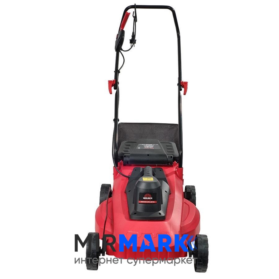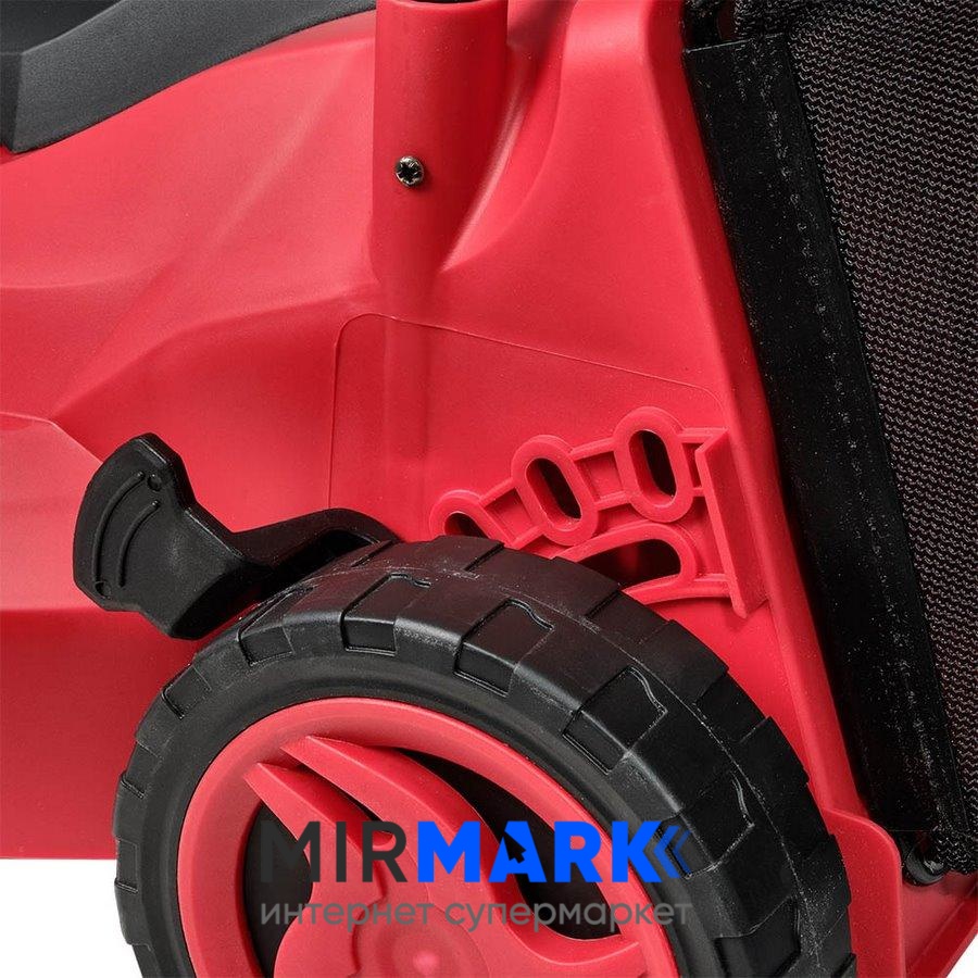 Як ріжучої системи залучений сталевий ніж зі швидкістю 3300 об/хв. Висоту скошування ви варіюєте на свій розсуд, вибираючи оптимальний рівень: 27/38/51/65/75 мм. Збір скошеної трави здійснюється у великій 30-літровий травозбірник, виконаний у вигляді металевого каркаса з напівпрозорої тканини. При бажанні можна включити режим мульчування. Ця косарка дуже практична і має складну ручку, не вибаглива до обслуговування.