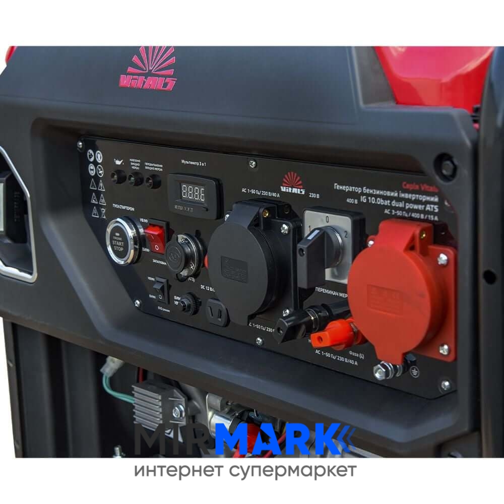 Огляд характеристик на Генератор бензиновий інверторний Vitals IG 10.0bat dual power + ATS, універсальний 1/3 (230/380 В), 11 кВт: