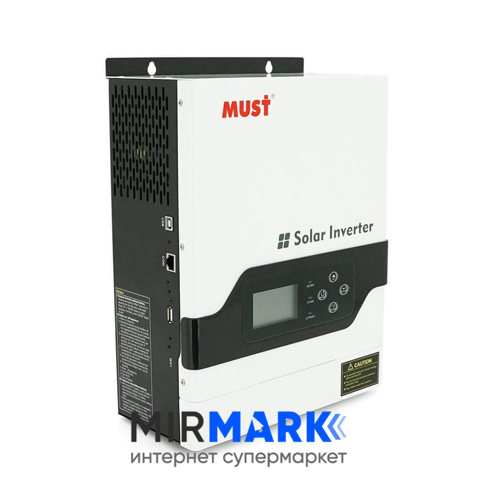 Опис на Гiбрiдний ДБЖ MUST PV18-1512VPM, 1500W, 12V, ток заряда 10/20А, 160-275V, MPPT (60А, 15-145 Vdc):