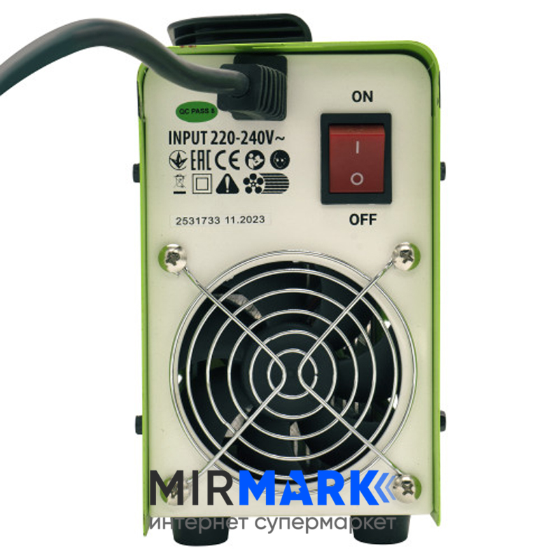 - Інвертор, інструкція, кабель тримача маси, кабель тримача електрода, молоток-щітка, щиток-маска
