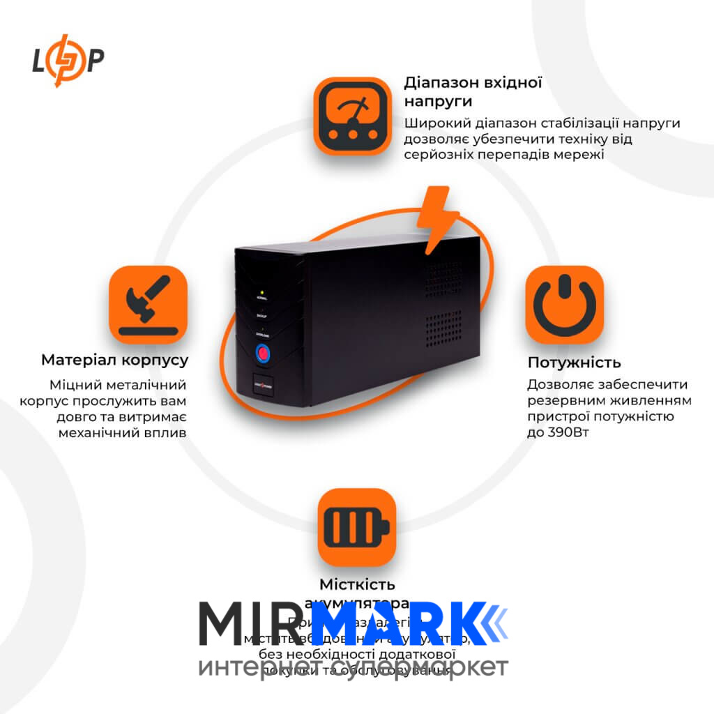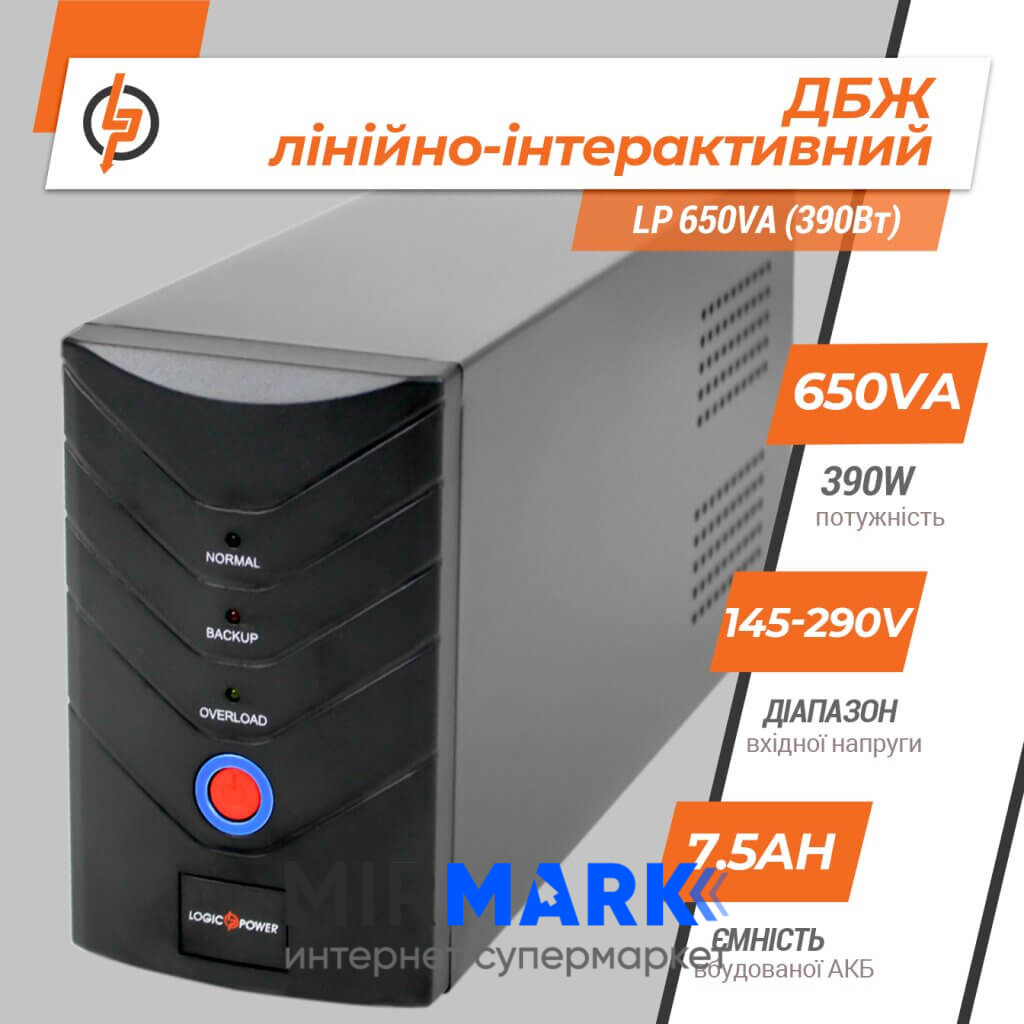 Опис на Джерело безперебійного живлення LogicPower LP 650VA (390Вт):