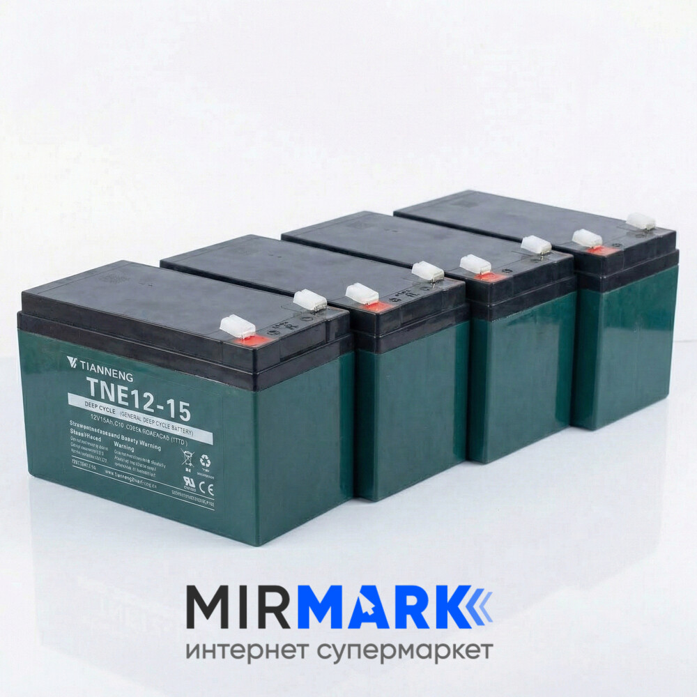 Комплект Tianneng TNE12-15 48V 15Ah призначений для створення компактної та надійної системи живлення з напругою 48 В. До складу комплекту входять чотири тягові AGM акумулятори по 12 В, які забезпечують стабільну роботу електрообладнання без необхідності підбору окремих елементів.