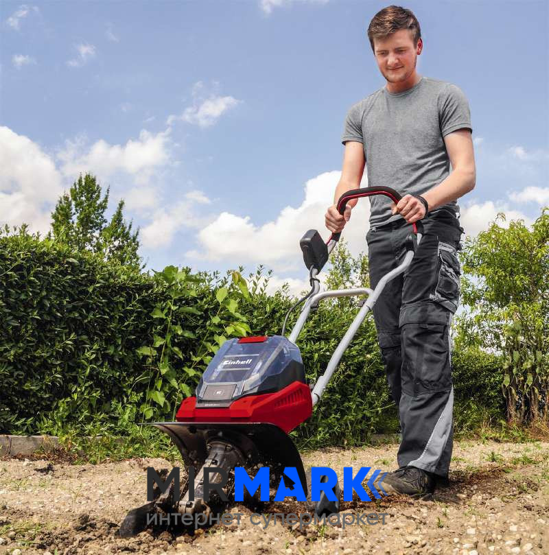 Акумуляторний культиватор Einhell GE-CR 30 Li - Solo із системи Power X-Change серії Expert plus — відмінний інструмент для обробки ґрунту на малих та середніх ділянках. Живиться від двох 18-вольтових акумуляторів (їх купують окремо), оскільки він є частиною лінійки Power X-Change. Потужні культиваторні ножі з робочою шириною 300 мм та максимальною глибиною до 200 мм забезпечують просування навіть по твердому ґрунту. Ергономічна складна довга ручка, а також регульовані по висоті транспортувальні колеса для зручності використання. Акумуляторний культиватор Einhell GE-CR 30 Li-Solo оснащений двоточковим захисним вимикачем, який відключає ножі культиватора, як тільки ви знімаєте ручку для безпечного використання.