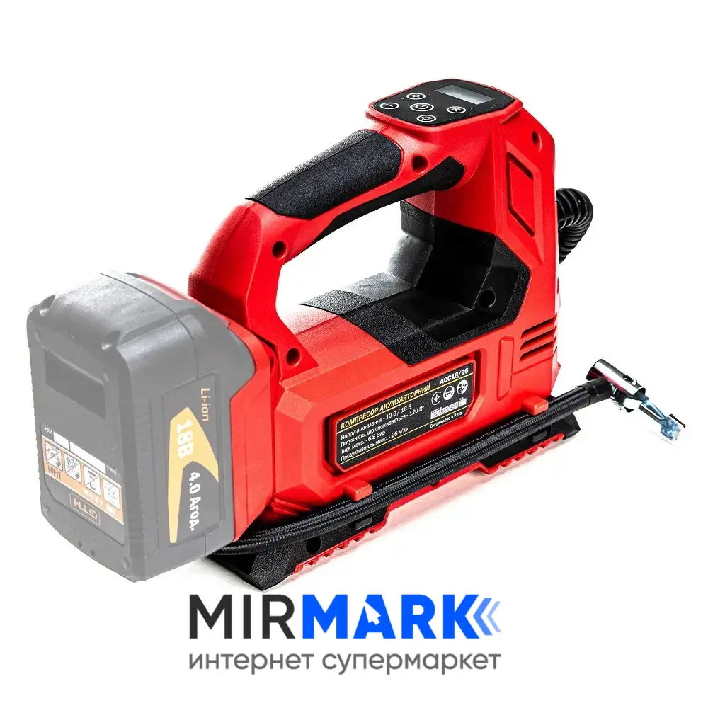 Опис на Мінікомпресор акумуляторний GTM ACC18/26 з АКБ та ЗП: