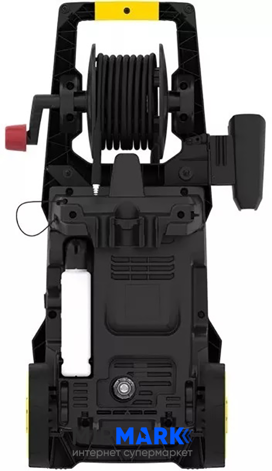 армований шланг високого тиску; пістолет; віялова насадка (звичайна); пінна насадка; щітка; шланг з котушкою