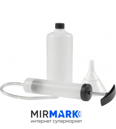 В набор входит: насос, лейка, емкость для масла.