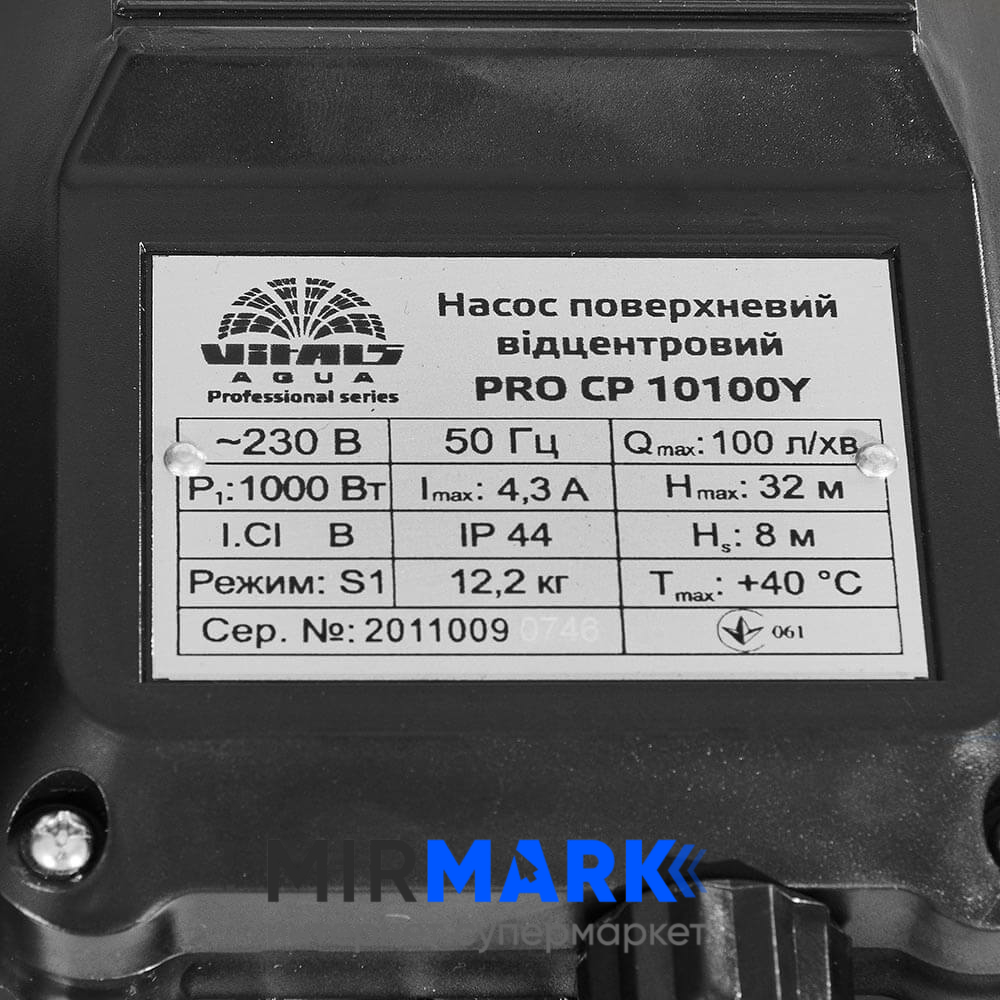 Опис на Насос поверхневий відцентровий Vitals aqua PRO CP 10100Y: