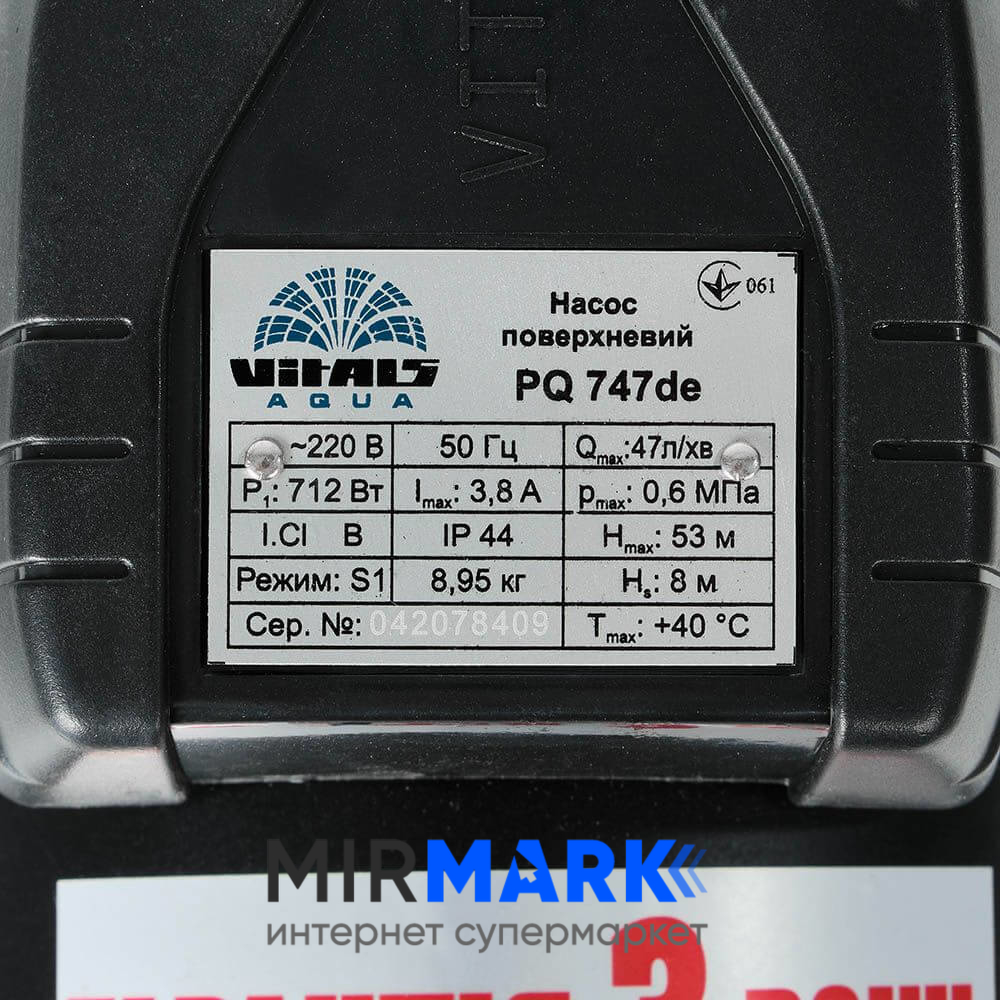 Опис на Насос поверхневий вихровий Vitals Aqua PQ 747de: