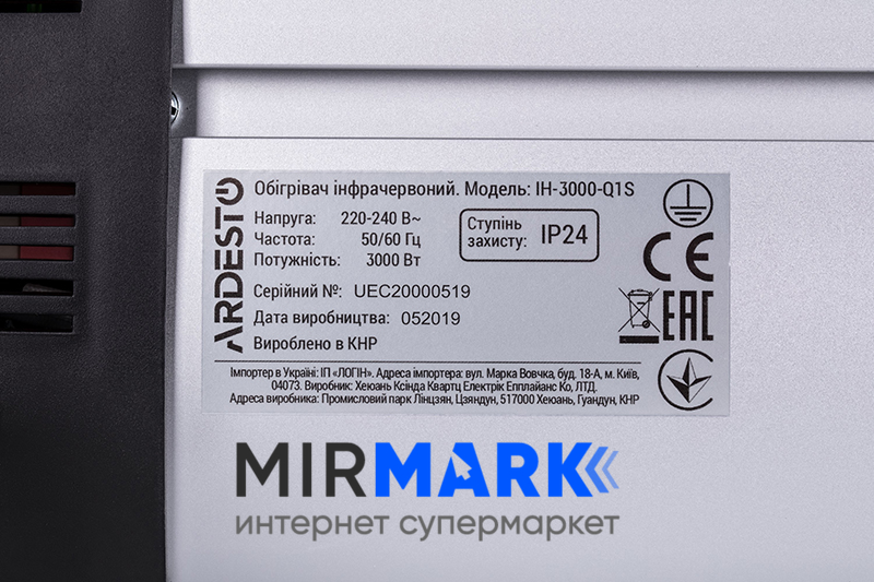 Огляд характеристик на Обігрівач інфрачервоний ARDESTO IH-3000-Q1S кварцовий, 16м2, 3000Вт, механічне управління, сірий/чорний: