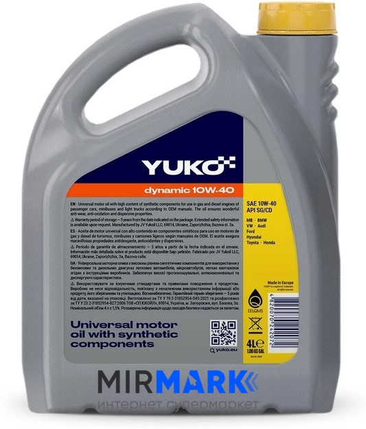 Опис на Олива моторна YUKO DYNAMIC 10W-40, 4л: