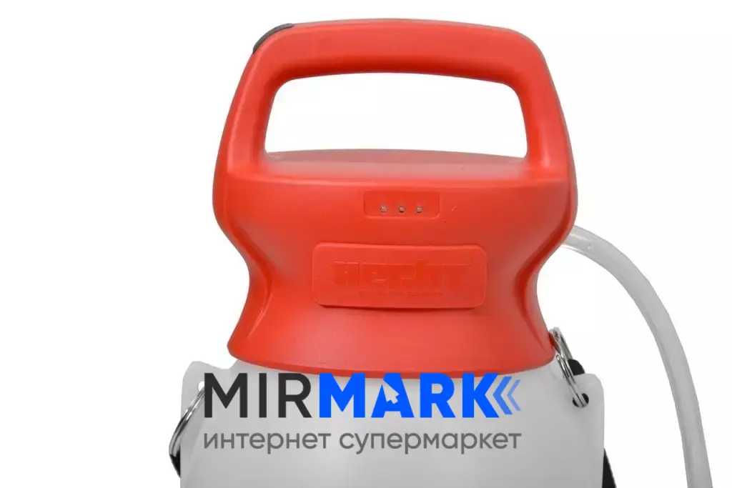 Інформативна індикація рівня заряду акумулятра (три синіх LED діода на корпусі); Зручна ручка для перенесення і утримання під час роботи; Велика горловина для зручного напрвнення рідиною; Телескопічна ручка з металу і довгий шланг 150 см для зручності роб