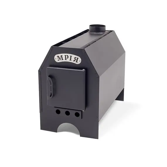 Буржуйка Мрия 15 идеально подходит для отопления дач и жилых домов, гаражей, теплиц, станций техобслуживания, торговых площадок объёмом до 100м3, где нет возможности использовать отопление на газу. Вы сможете приготовить, разогреть еду или воду очень быстро и экономно. Объем максимальной закладки топлива — 30л. Время нагрева до max температуры зависит от размера Ваших помещений и мощности самой печи. При выборе необходимой мощности печи — это от 30мин. до 1 часа. Регулятор подачи воздуха печки Мрия обеспечит работу до 7ч на одной полной загрузке дров, а конвективный стальной кожух значительно увеличивает КПД печки. Для длительности срока службы буржуйки Мрия 15, рекомендовано только твердое топливо (все, кроме угля): дрова, картонажные изделия, бумажные отходы и проч. Перед началом использования надо подключить дымоход с диаметром 100мм, как у выходной трубы печи.