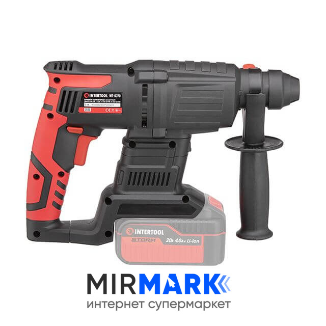 Огляд характеристик на Перфоратор акумуляторний Intertool WT-9370 з безщітковим двигуном 20 В, 2 Дж, 0-1250 об / хв, 0-4800 уд / хв, SDS plus, без ЗП та АКБ, кейс: