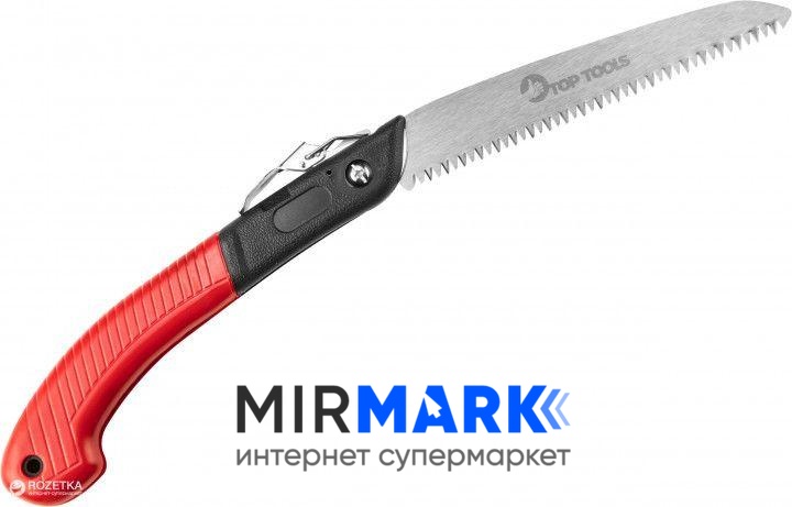 Представлена модель садової пили TOP TOOLS відрізняється ергономічністю і якістю матеріалу виготовлення. Виробляється вона з міцної сталі, а також має пластикову зручну ручку. Особливістю є те, що при необхідності даний інструмент можна скласти і він не буде займати багато місця при транспортуванні або зберіганні. Також передбачена можливість проведення заточування ріжучої кромки. Довжина інструмента становить 18 см, а виробник дає гарантію на свій пристрій.