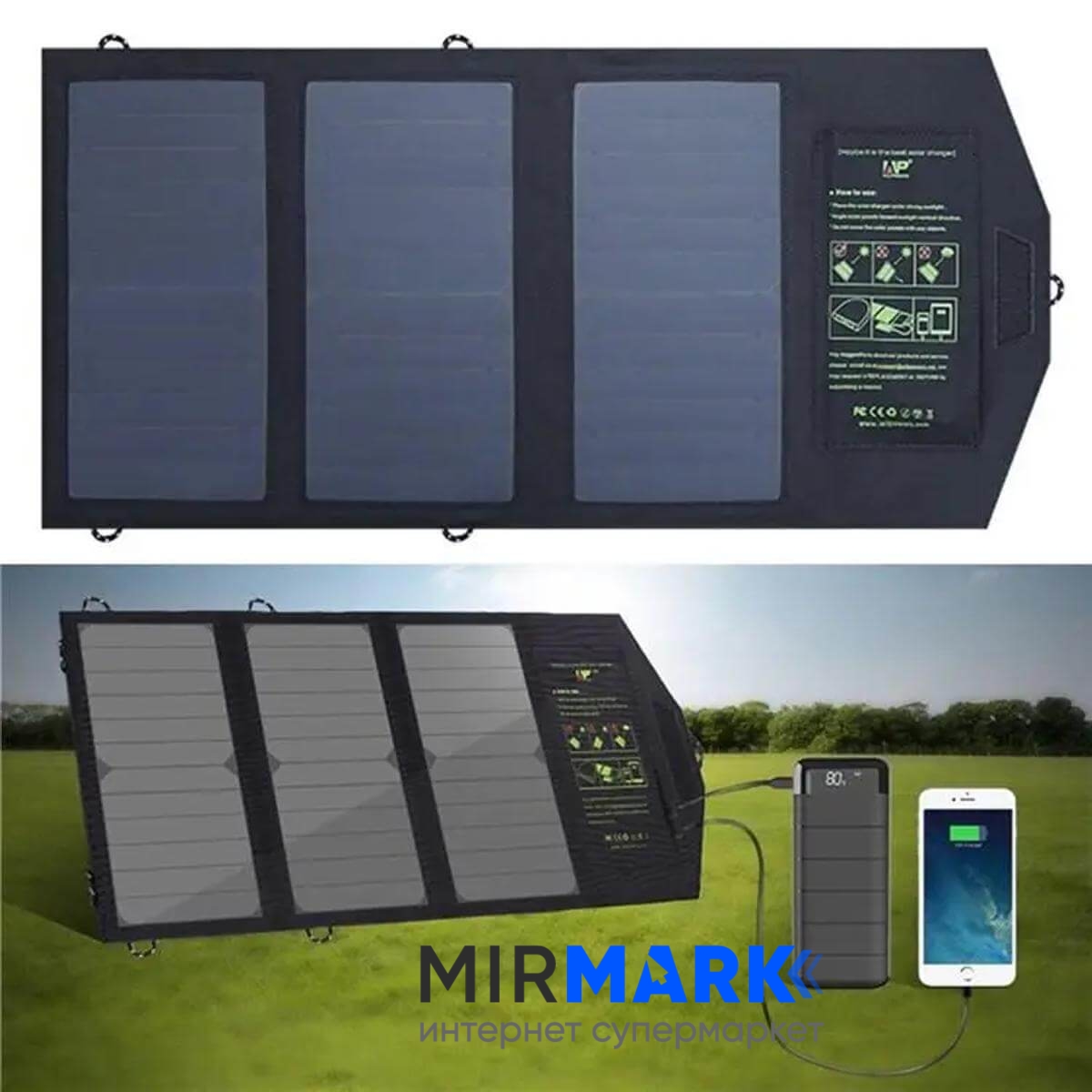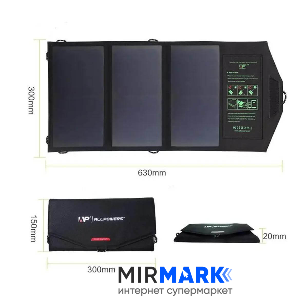 Опис на Портативна сонячна панель Allpowers 21W AP-SP5V21W (2 USB):