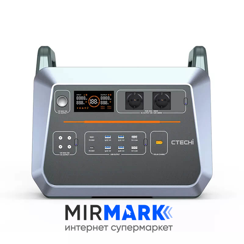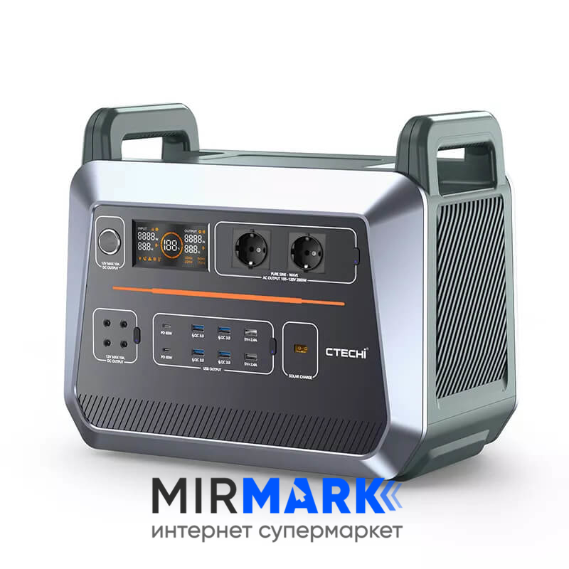 Портативна зарядна станція CTECHi ST2000, 2000 Вт, 1536Вт/час, LiFePO4 (літій-залізо-фосфатний)