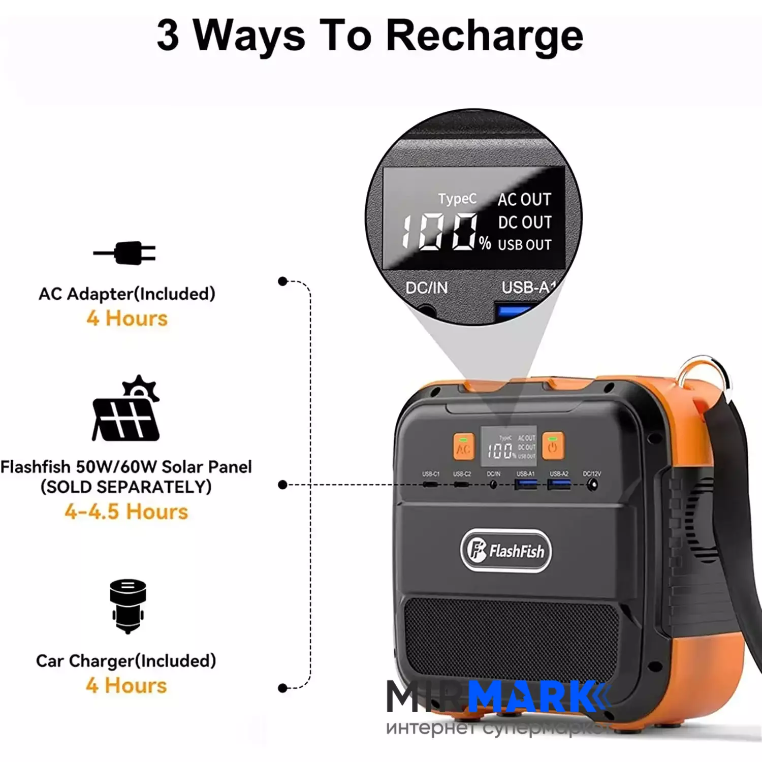 Опис на Портативна зарядна станція FlashFish A101 (120W), 120 Вт, 98Вт/час, Li-Ion (літій-іонний):