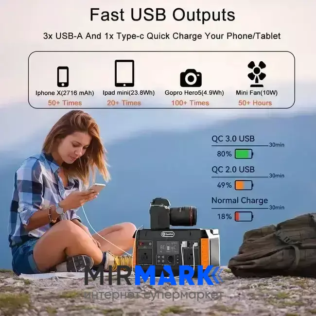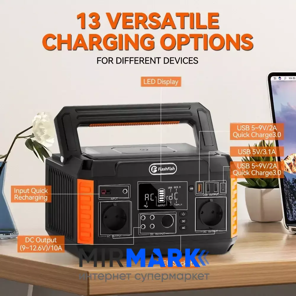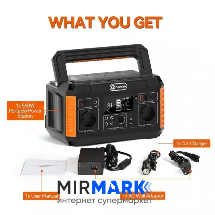 Опис на Портативна зарядна станція FlashFish P60 (560W), 500 Вт, 520Вт/час, Li-Ion (літій-іонний):