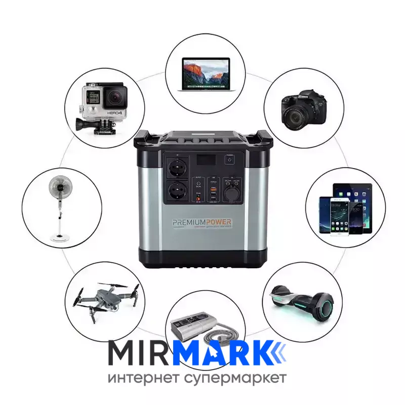 Огляд характеристик на Портативна зарядна станція PremiumPower PB2000N, 2000 Вт, 2220Вт/час, Li-Ion (літій-іонний):