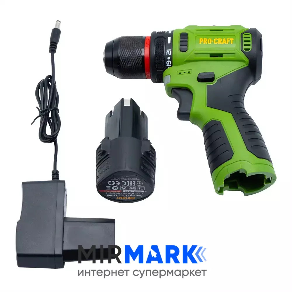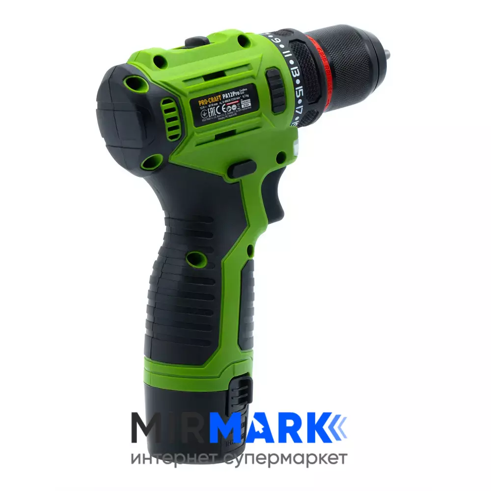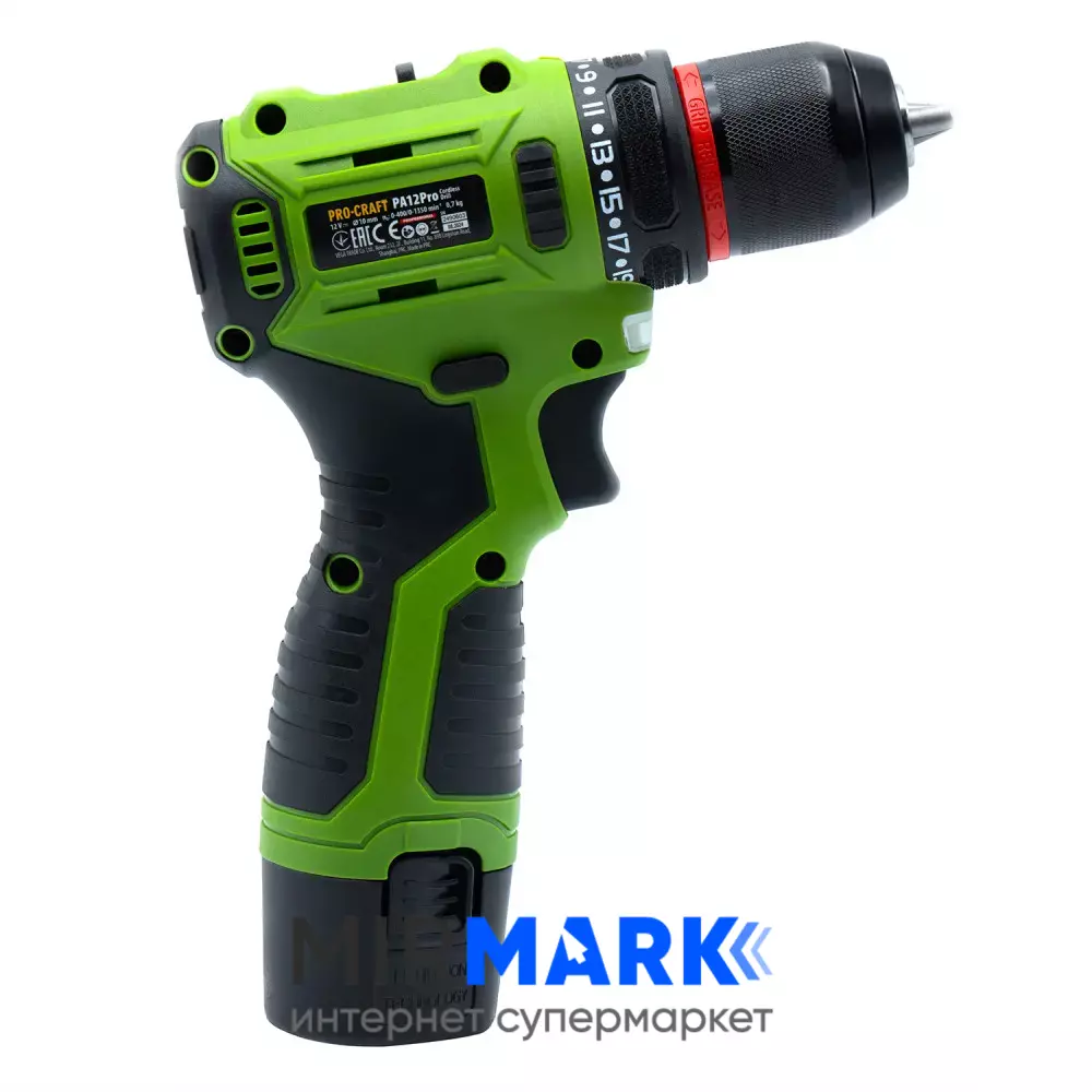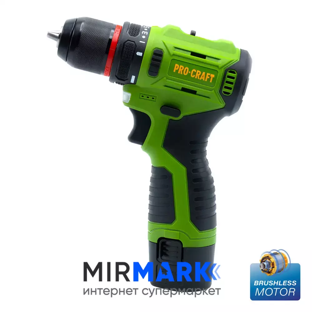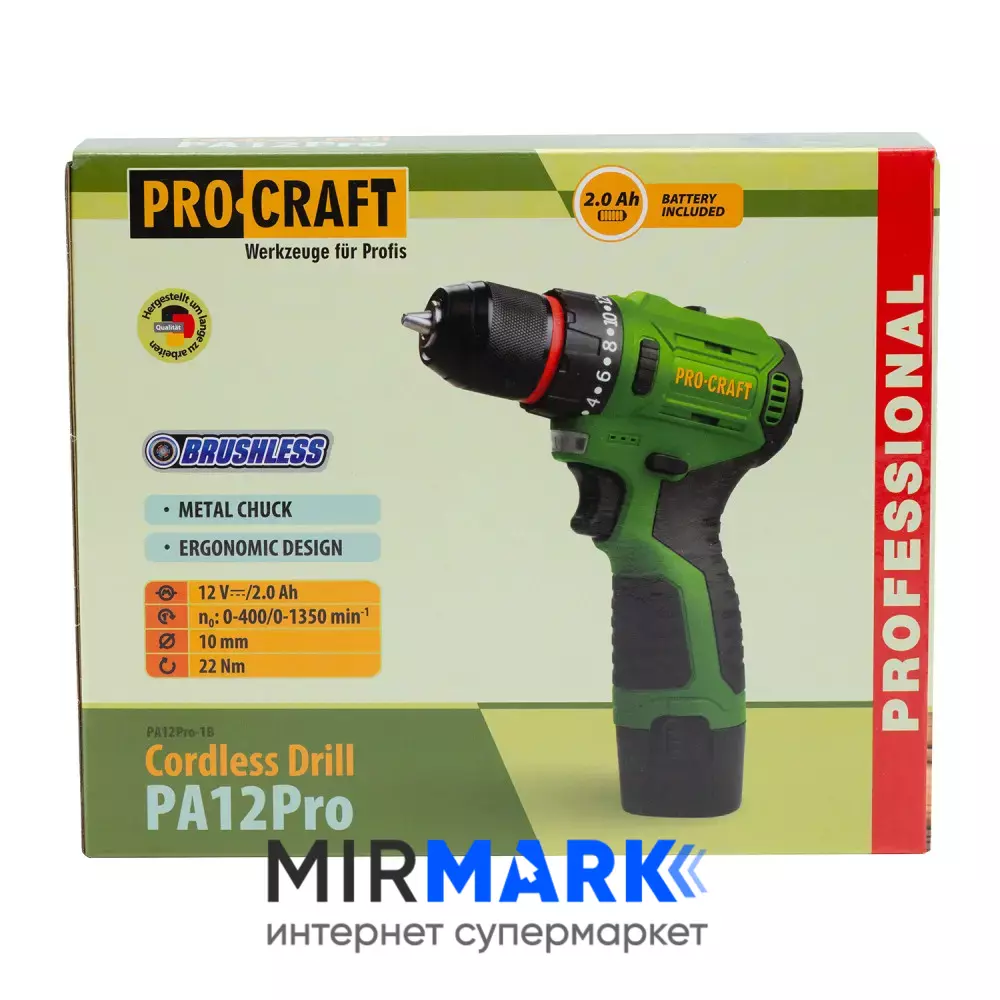 Шурупокрут акумуляторний ProCraft PA-12PRO, 12В Li-Ion, 2.0Аг, безщітковий, 22Нм, 0-1350 об/хв, з АКБ (комплект)