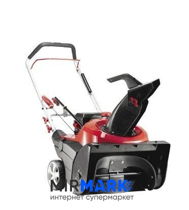 Максимальна відстань викиду снігу становить 10 метрів, жолоб регулюється вручну, кут повороту дефлектора становить 180 градусів.