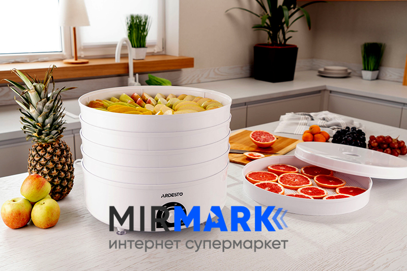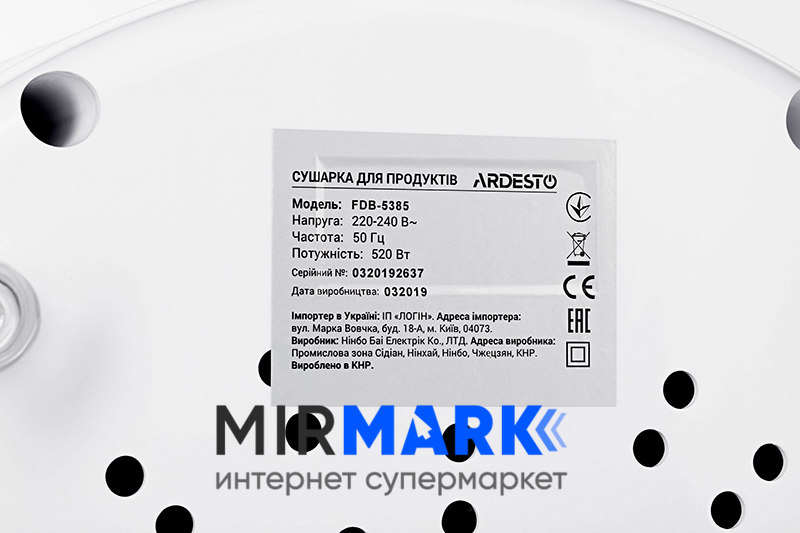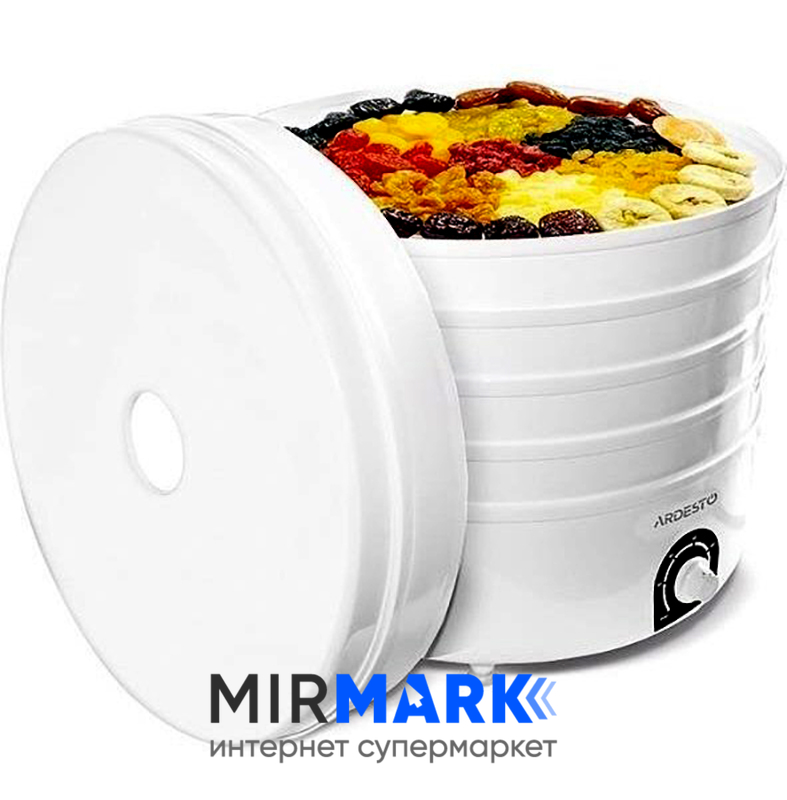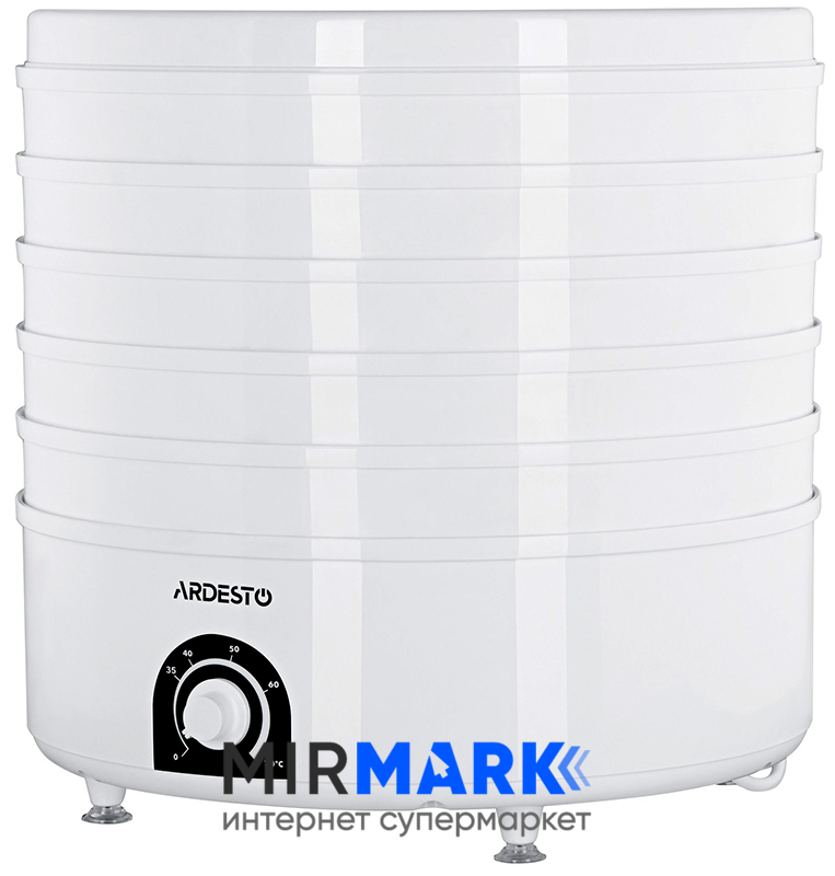 Огляд характеристик на Сушарка для продуктів Ardesto FDB-5385, 520Вт, піддонів -5x4см, діаметр-38,5см, регулятор температури, пластик , білий: