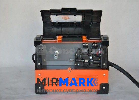 - Інструкція, кабель тримача маси, кабель тримача електрода, кейс, молоток-щітка, зварювальний апарат, упаковка, щиток-маска