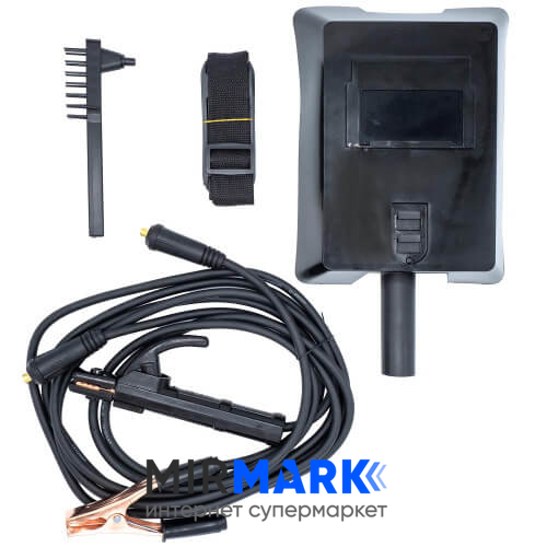 - Інвертор, інструкція, кабель тримача маси, кабель тримача електрода, молоток-щітка, щиток-маска