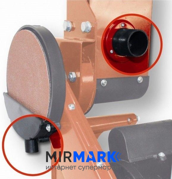 Асинхронний електродвигун потужністю 375 Ватт функціонує від 1-фазної мережі напругою 220 Вольт. Він розвиває високу швидкість обертання робочого елемента: диска діаметром 150 мм або стрічки довжиною 915 мм і шириною 100 мм – 1450 обертів за хвилину і 276 м/хв та має захист від перевантаження по потужності або перепадів напруги в електромережі. Захист рушійних елементів і головних вузлів від перегрівання виконується ефективною системою повітряного охолодження. Використання у виготовленні високоякісних матеріалів та компонентів забезпечує довгий термін експлуатації. Робочий стіл з оброблюваною заготовкою можна регулювати, виходячи із специфіки шліфування. Кут нахилу виставляється вручну і вар`юється у межах 0-45 градусів.
