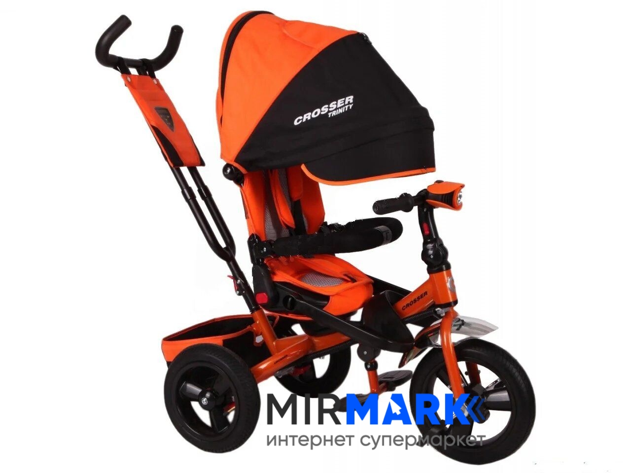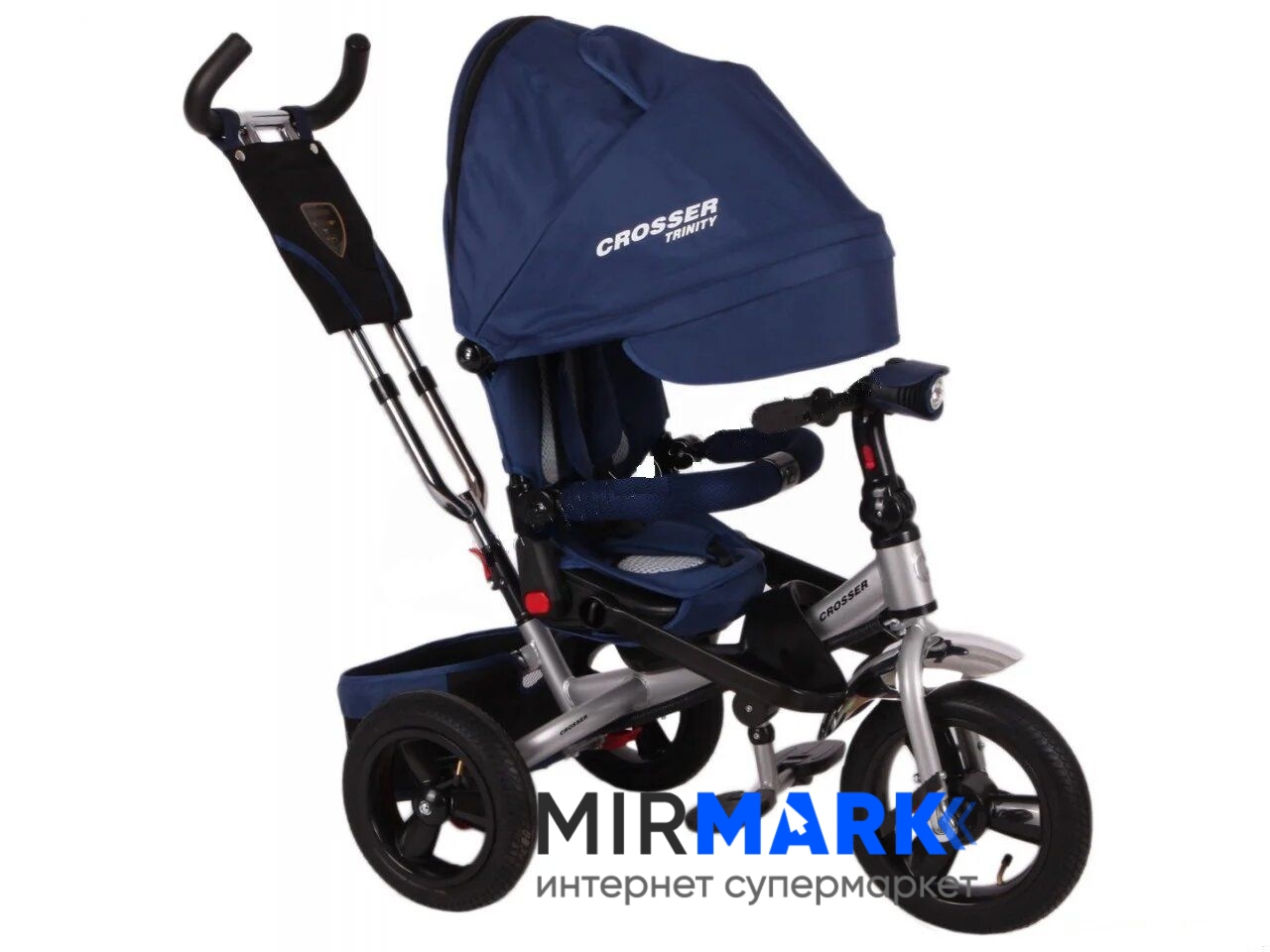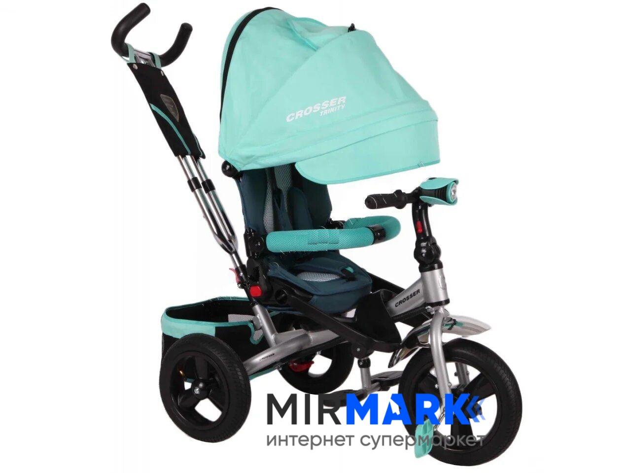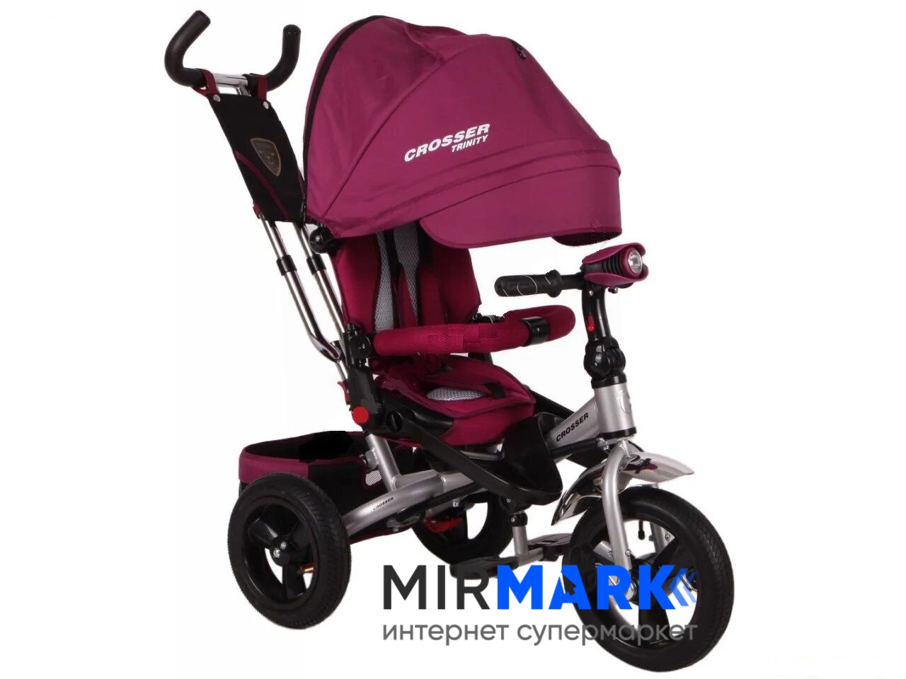 Для того, щоб ваше чадо не нудьгував, встановлена музична панель, великі надувні колеса згладять будь-які нерівності на дорозі, а для темного час доби передбачена фара. Нижня корзина дуже містка, тому з собою можна взяти додаткові речі або іграшки, ще є на ручці невелика кишенька. Захисний капюшон і спинка велосипеда мають три положення. Спинка з м'яким дихаючим вкладишем, триточковими ременями безпеки і знімними бампером - все що потрібно для збереження вашої дитини під час прогулянки. В капюшоні є оглядове віконце, яке дозволить контролювати ситуацію.