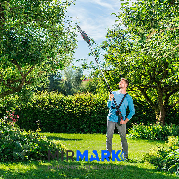 У комплекті йде: висоторізи, шина, ланцюг, чохол для шини, ремінь. Акумулятор купується окремо.
