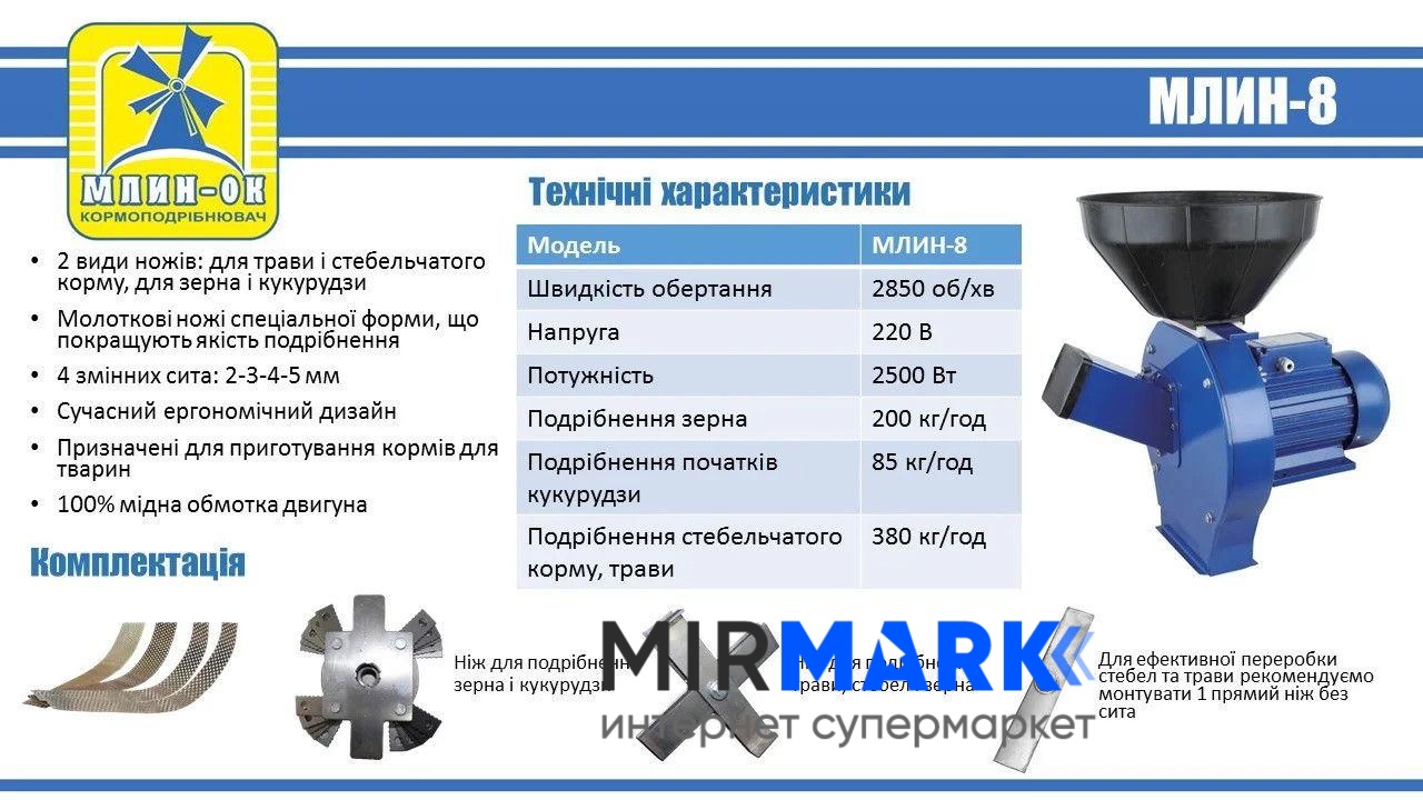 Огляд характеристик на Зернодробарка МЛИН-ОК МЛИН-8: