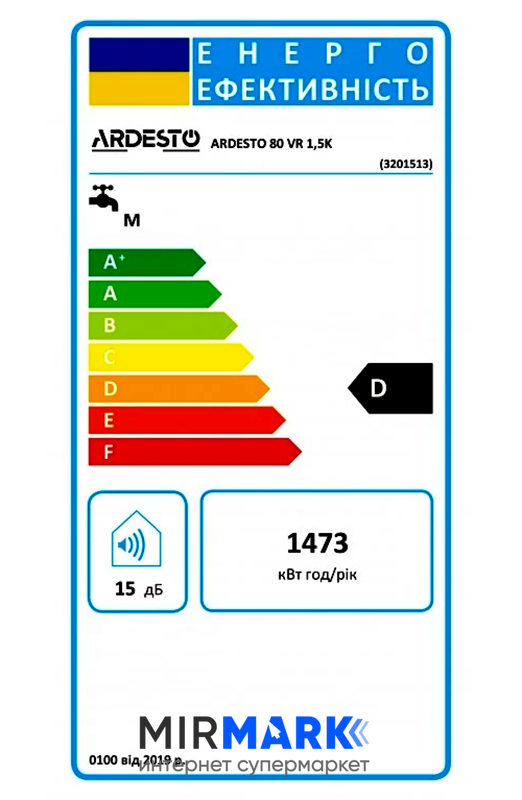 Описание на Водонагреватель электрический. ARDESTO NEU NTS 80 VR 1.5K круглый, 80л, 1,5кВт, механическое управление, D, Италия, белый, 3201513: