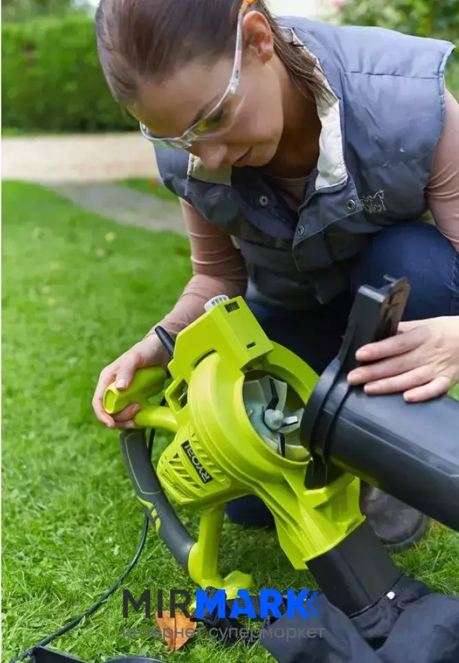 Обзор характеристик на Воздуходув-пылесос садовый Ryobi RBV3000CSV, 3кВт, измельчитель, 14 куб/мин, 375 км/ч, эргономичные ремни Vertebrae, 4.2 кг: