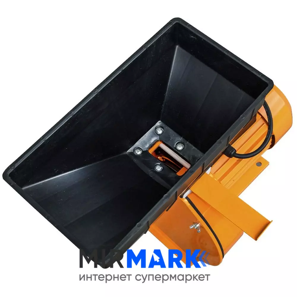Большой загрузочный бункер из прочного пластика: Позволяет загружать большое количество кормового материала за один раз. Сдвижная заслонка позволяет регулировать скорость подачи корма в дробильную камеру. Пластиковый материал не подвержен коррозии, что также увеличивает срок службы бункера.